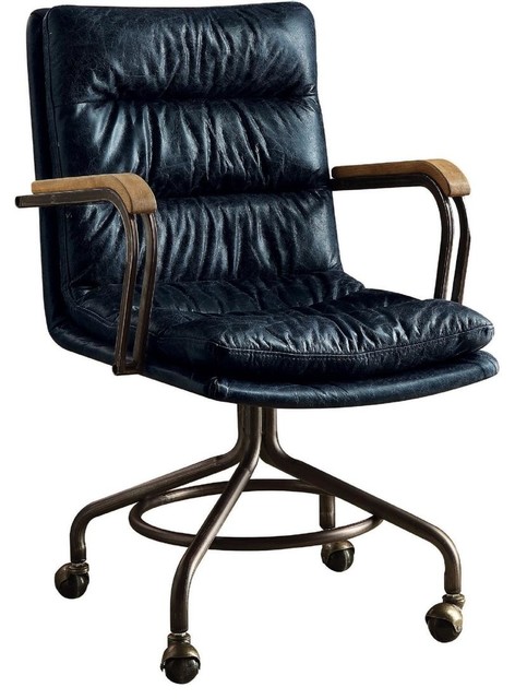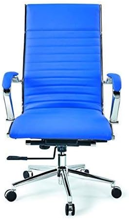 View Blue Executive Office Chair PNG. High quality office executive chair ergonomic computer gaming chair household. Upholstered in premium steel blue bonded leather and accented with light gray to accentuate the details.